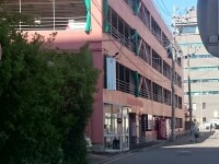 下部の写真にあるように、事務所の裏手にある茶色の立体駐車場の横に、駐車場があります。