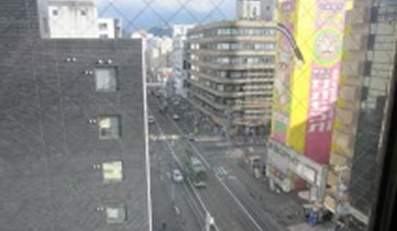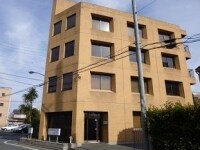 合同庁舎駐車場入口の、道路を挟んで反対側の角の黄土色4階建ての建物です。